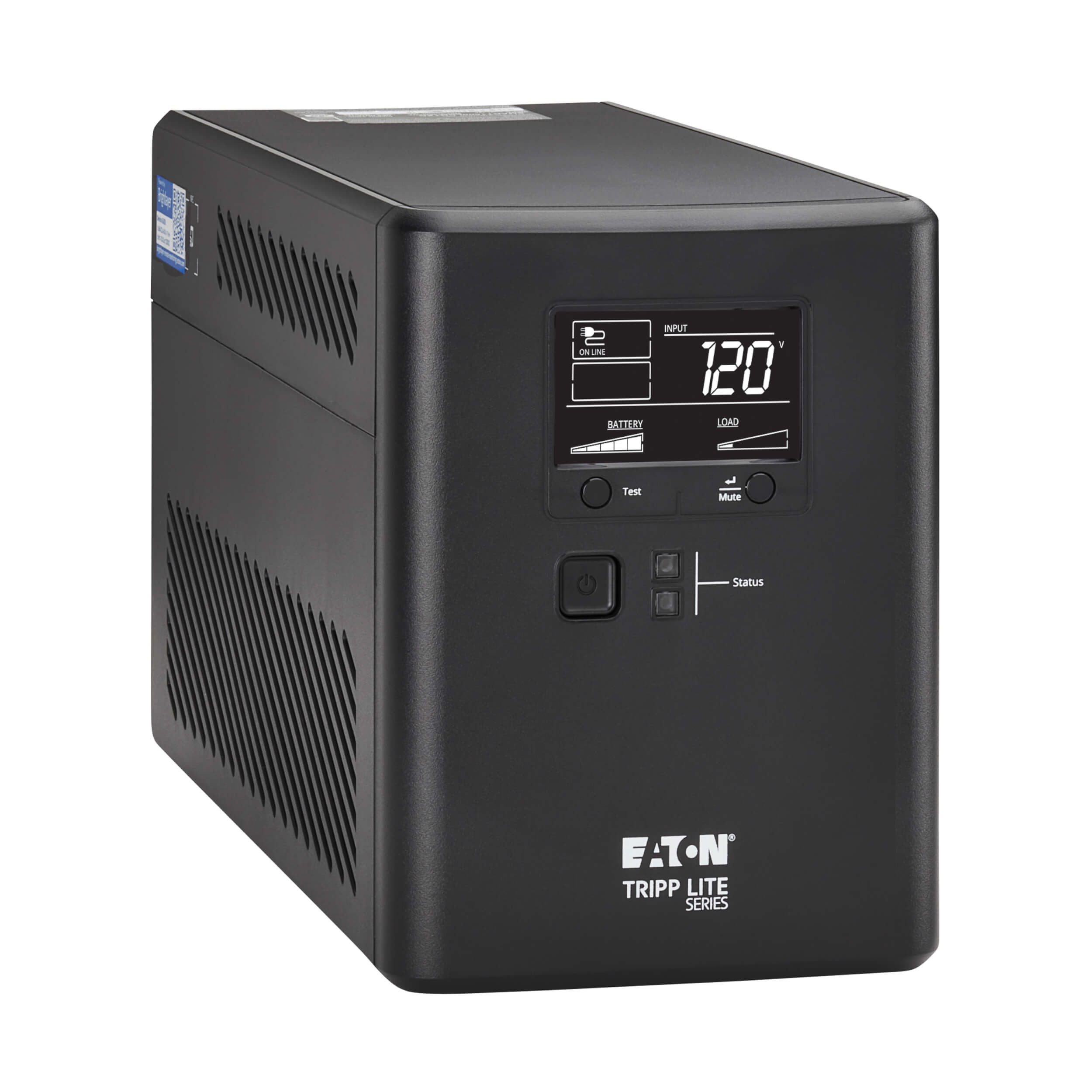 The easy-to-read LCD and two diagnostic LEDs provide vital status information, including voltage, battery level, load level and power usage. The audible alarm indicates low-battery and fault conditions. It can be disabled via the LCD or the remote monitoring app, which will still respond to silenced alarms via the app.