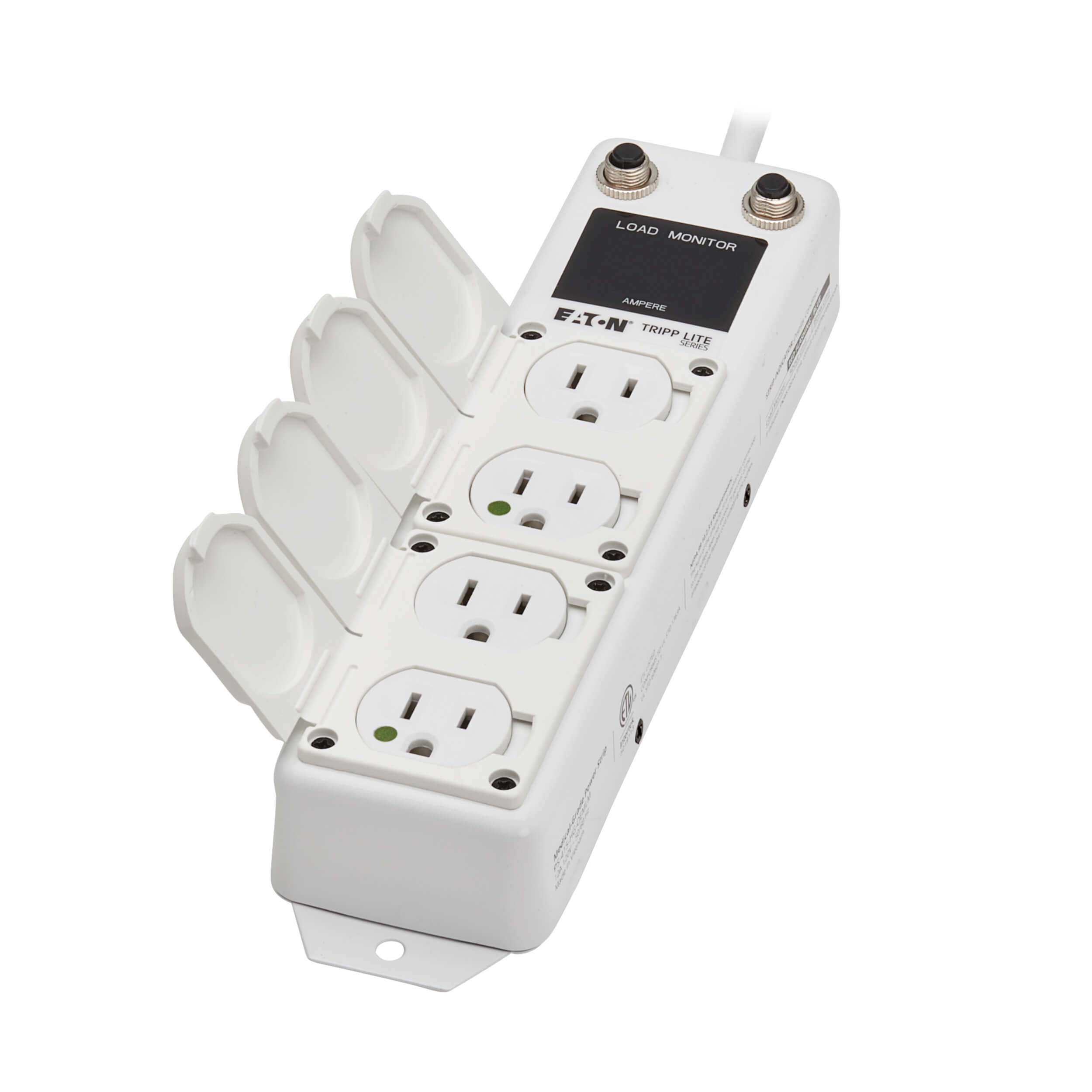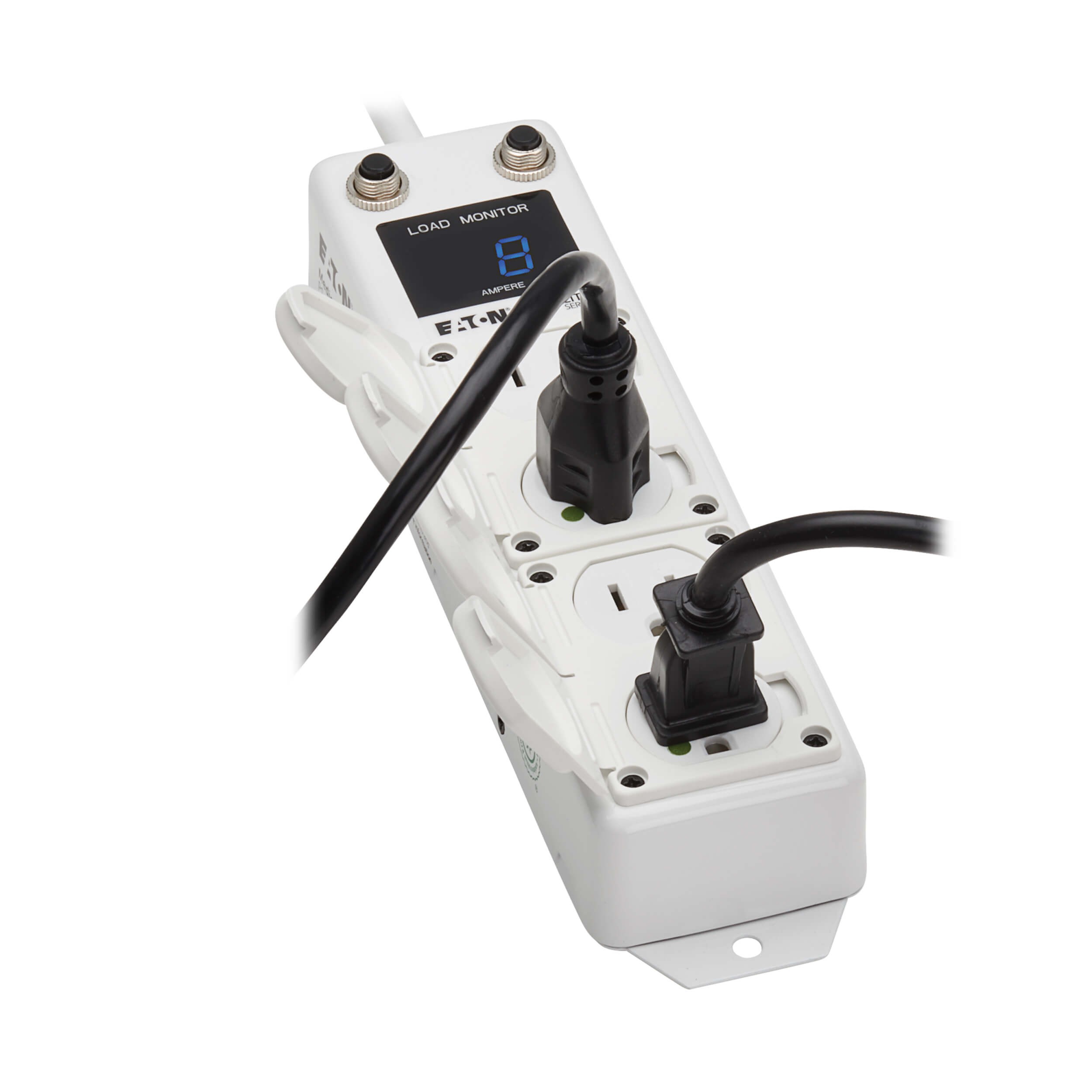 This power strip features an electronic two-digit load monitor that lets you know if the strip is close to reaching or exceeding National Fire Protection Association (NFPA) 99 standards (“The sum of the ampacity of all appliances connected to the outlets does not exceed 75 percent of the ampacity of the flexible cord supplying the outlets.”). If the rated cord current exceeds the NFPA 99 limit, the load monitor flashes and switches colors to catch your attention from a distance without creating alarm fatigue.