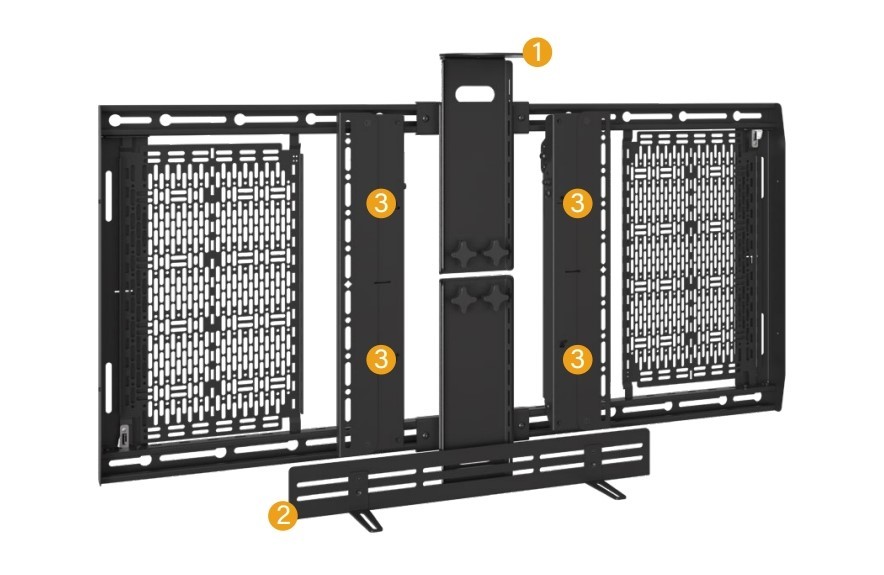 Lateral shift offers precision placement of the Crestron UC Bracket assembly behind display
