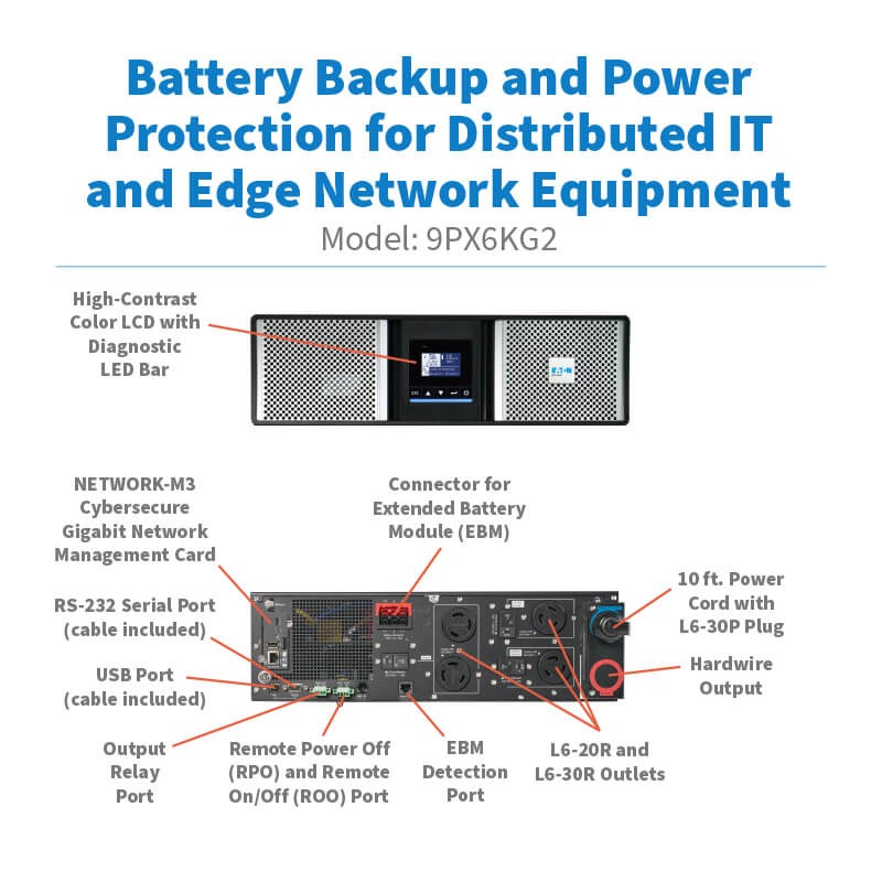 6kVA/5.4kW/208V Battery Backup for Distributed IT and Edge Networks