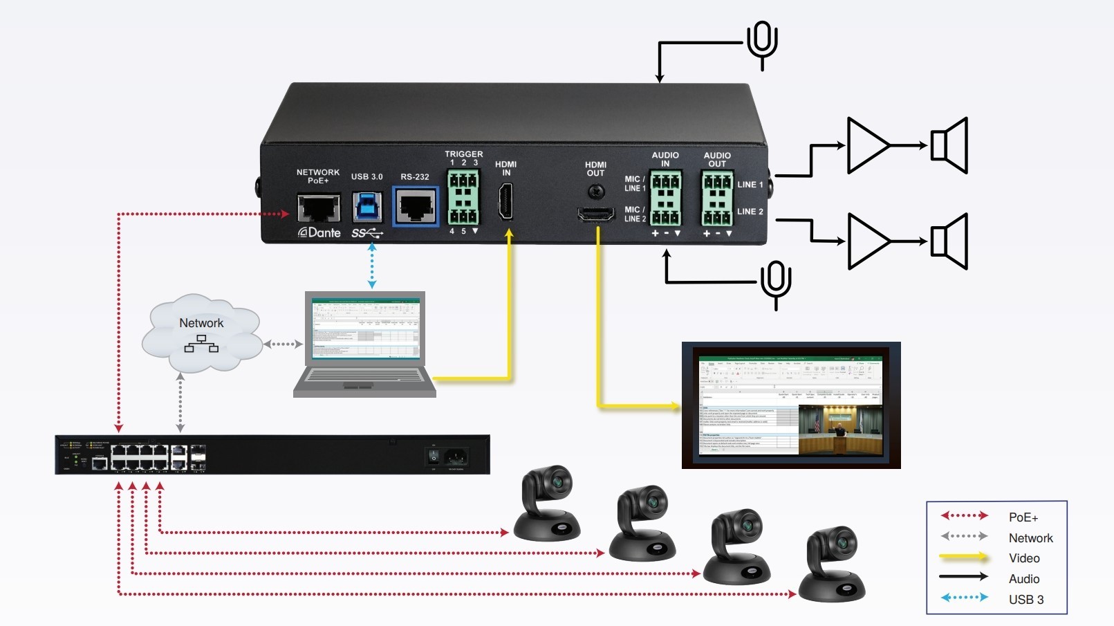 It's a simple AV-over-IP solution for extended and networked conferencing in meeting rooms, houses of worship, government and training rooms alike.