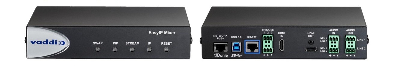 The EasyIP Mixer combines Dante audio sources and four Vaddio EasyIP cameras to deliver our easiest production switcher to date. Ideal for large classrooms and perfect for capture over USB 3.0 or videoconferencing.
