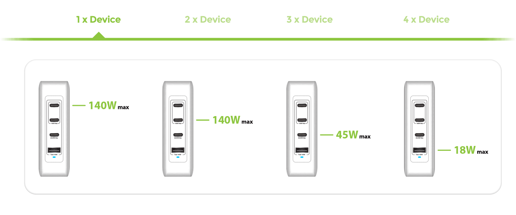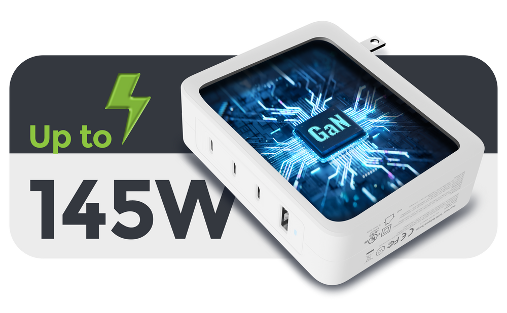 With the GearPower 145W Multiport Charger, you can say goodbye to slow charging times. This powerful charger is equipped with the latest USB-C technology, which allows you to charge your devices at their maximum speed, including up to 140W for compatible laptops.