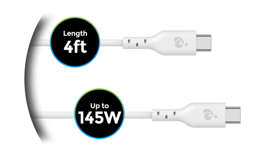 The GearPower 145W Multiport Charger comes with a USB-C to C 4ft cable, so you can start charging your devices right away. This cable is also compatible with a wide range of devices, including laptops, tablets, and smartphones.