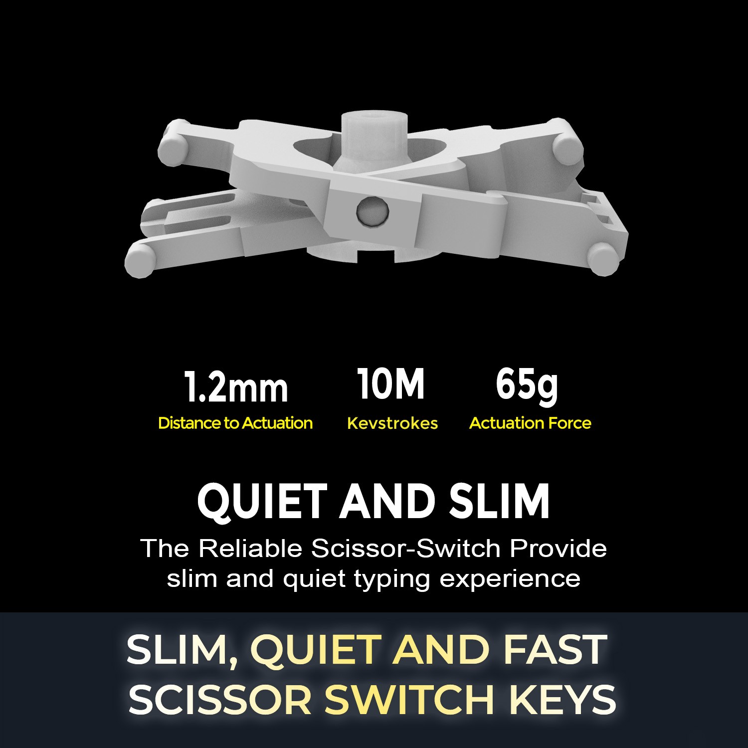 The scissor-switch keys not only offer a faster, quieter and more responsive typing experience, but also provides comfort, speed and better tactile feel.