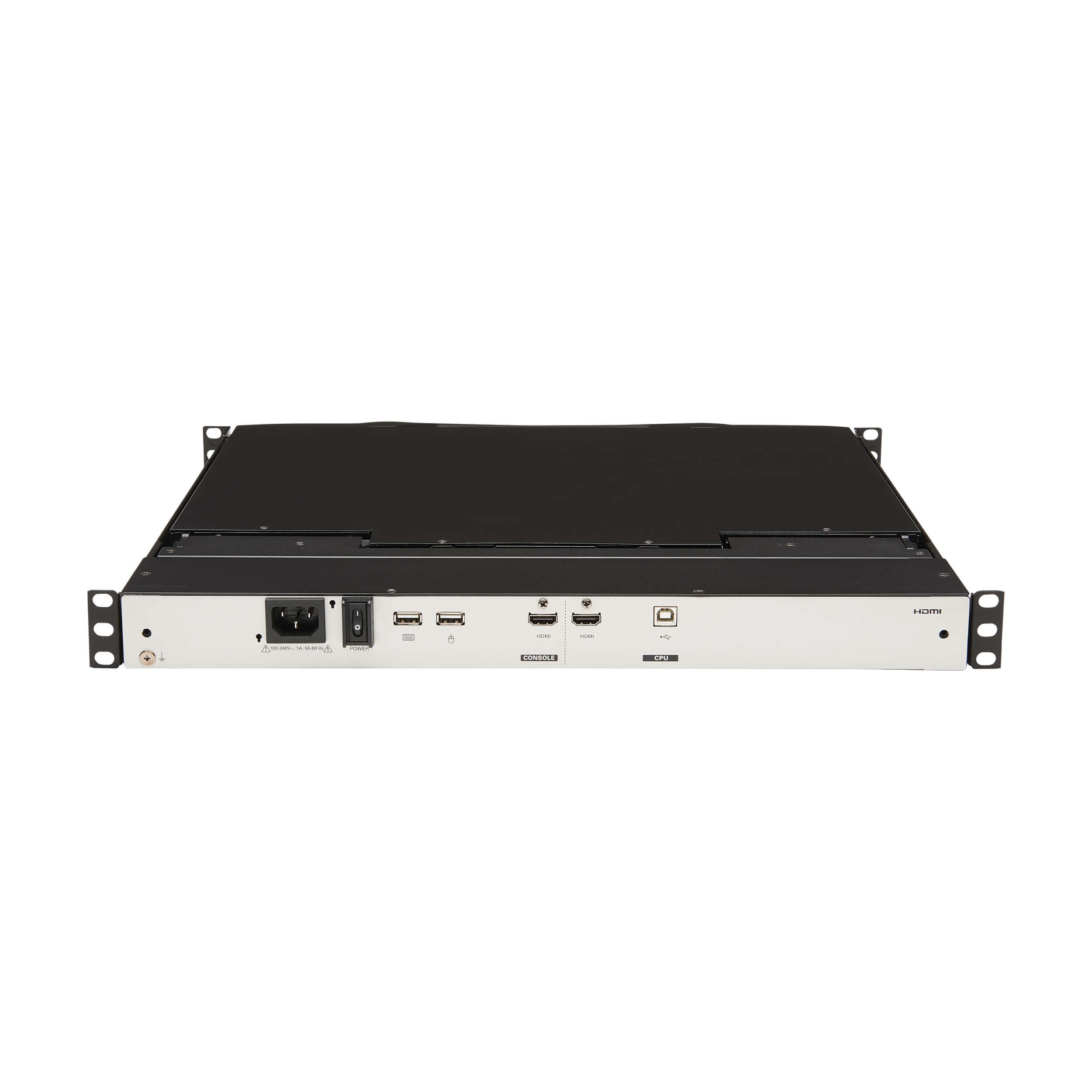 This 1U short-depth console ships with 2-in-1 mounting rails that allow it to be installed directly in front of an HDMI KVM switch to save rack space. Housed in an all-metal sliding drawer, the console mounts with included hardware into 1U of your EIA-standard 19-inch rack. Just pull out the drawer and flip up the 1080p color widescreen monitor when you need it. Slide it back into the rack when not in use. The B021-SWHD-K works with Windows, macOS, Linux and Sun.