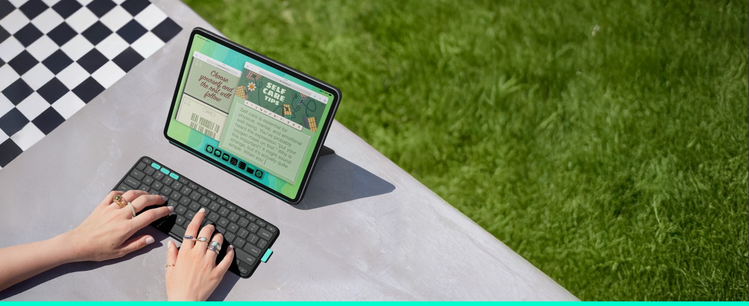 Use the Bluetooth keyboard with iPadOS layout anywhere or stow it away. Wireless design gives you the freedom to position it how you like.