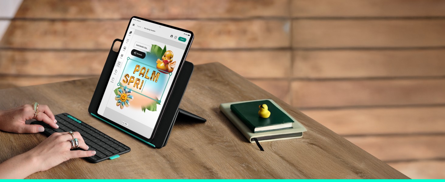 A flexible kickstand lets you find the right angle for viewing or typing, all with a compact footprint.