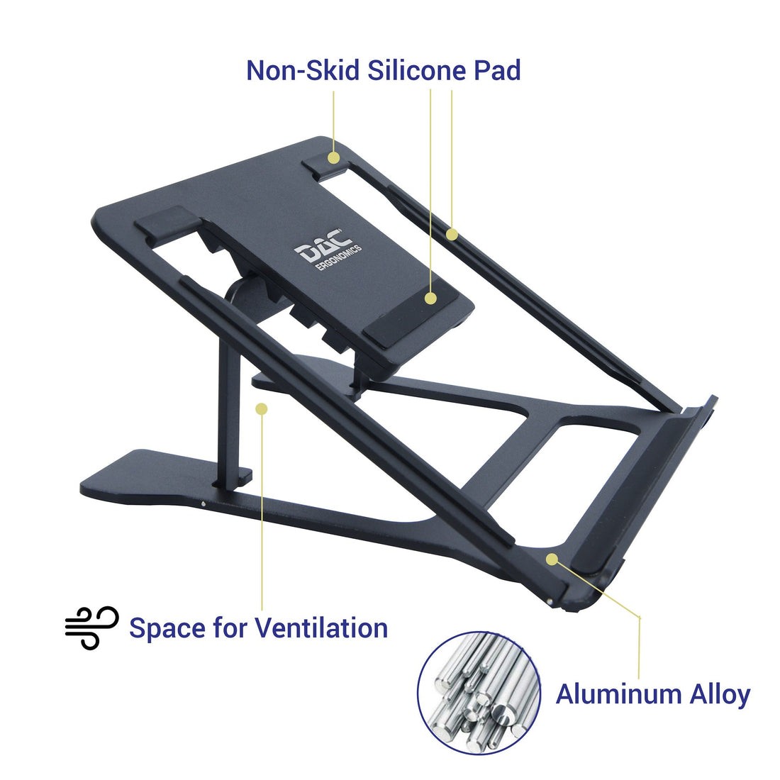 DACĀ® MP-224 Portable Laptop Stand With 6 Height Levels, Black