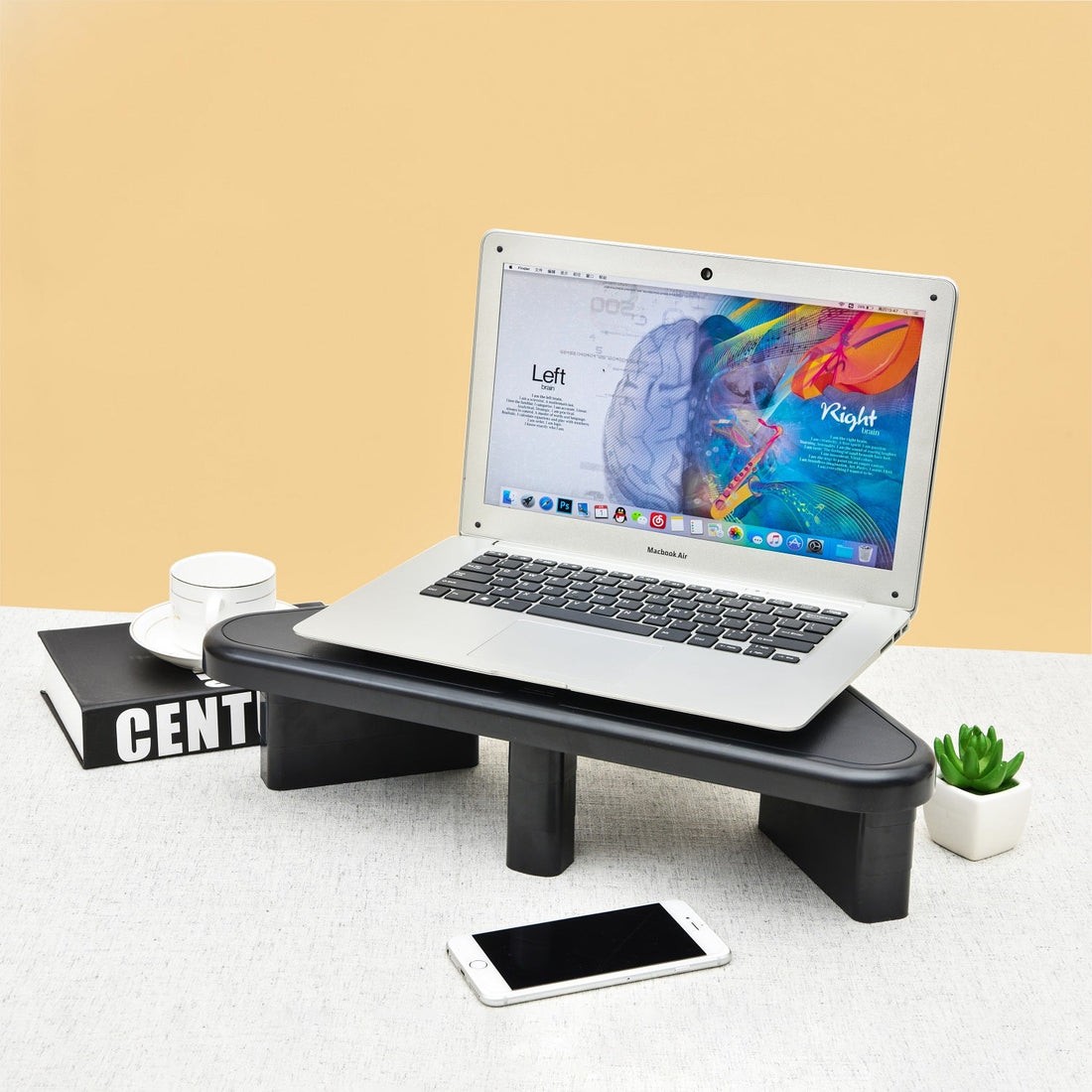 - Reduces neck muscle fatigue and eye strain by adjusting your computer monitor to an ergonomically comfortable height