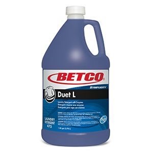 All-in-one liquid laundry detergent designed for residential style machines. Duet L brightens and whitens as it safely lifts stubborn dirt and stains. It performs well in all water temperatures and it is safe for all types of waterfast natural and synthetic fabrics.