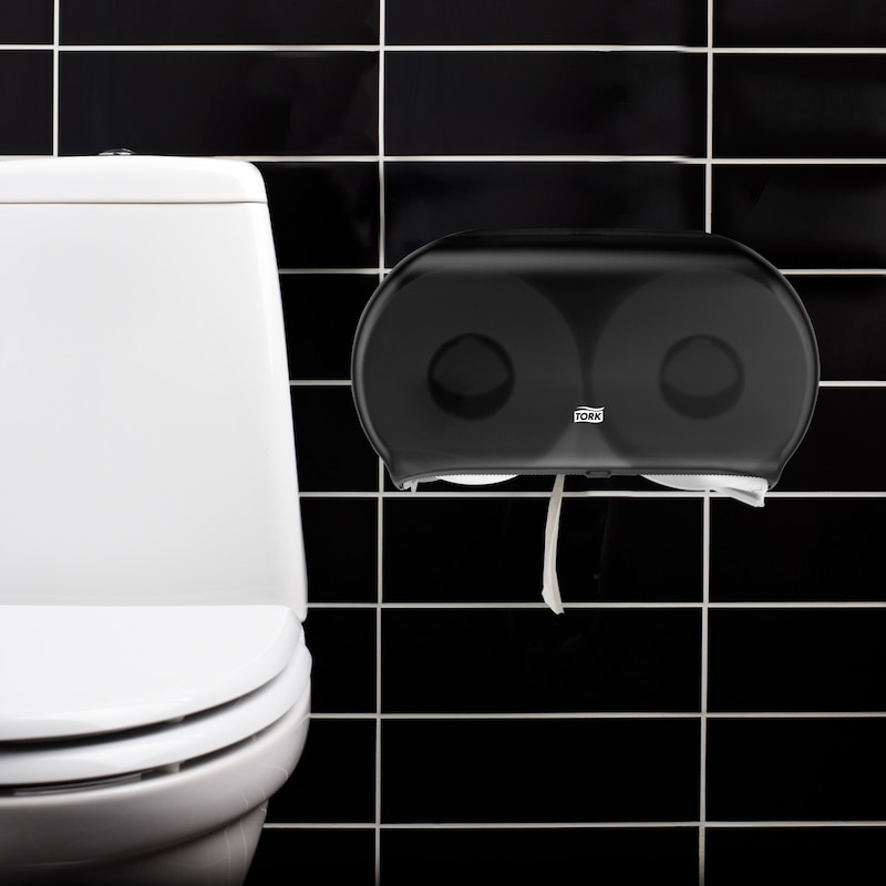 The Tork Twin Jumbo Bath Tissue Roll Dispenser's large double 9" roll capacity is the ideal solution for any high traffic environment. This dispenser solution helps to reduce maintenance costs by decreasing the frequency that the dispenser needs to be refilled and fewer service interruptions to be experienced by your patrons.