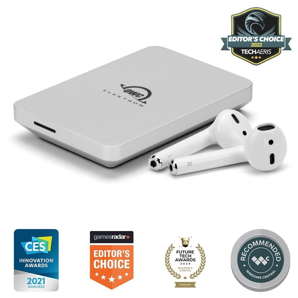 The OWC Envoy Pro Elektron is the fastest, toughest mini USB-C SSD in the galaxy. This crushproof, dustproof, and waterproof drive pushes the bandwidth of the USB-C interface to the max so you can edit and save anywhere, anytime. We aren’t the only ones singing its praises. The OWC Envoy Pro Elektron won the Gamesradar+ Editor’s Choice Award and took the Recommended category at Windows Central. The OWC Envoy Pro Elektron was a 2021 honoree at CES Innovation Awards and was reader-nominated for the 2020 Future Tech Awards. Experience for yourself why critics around the world are raving about the OWC Envoy Pro Elektron – the highly compatible, pocket-sized powerhouse that fits in the palm of your hand.