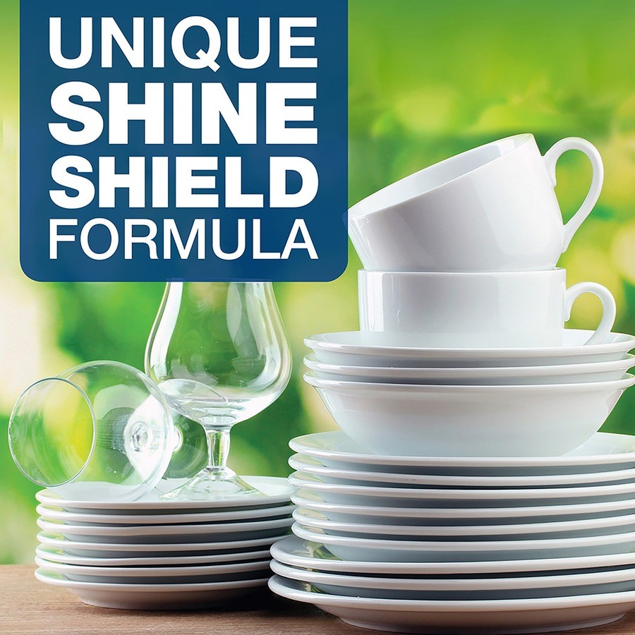 Cascade dishwasher detergent with Shine Shield formula rinses away residue, leaving dishes sparkling and clean. This automatic dishwasher detergent cleans so thoroughly that virtually nothing is left behind but pure clean, pure shine. Detergent contains no phosphates.