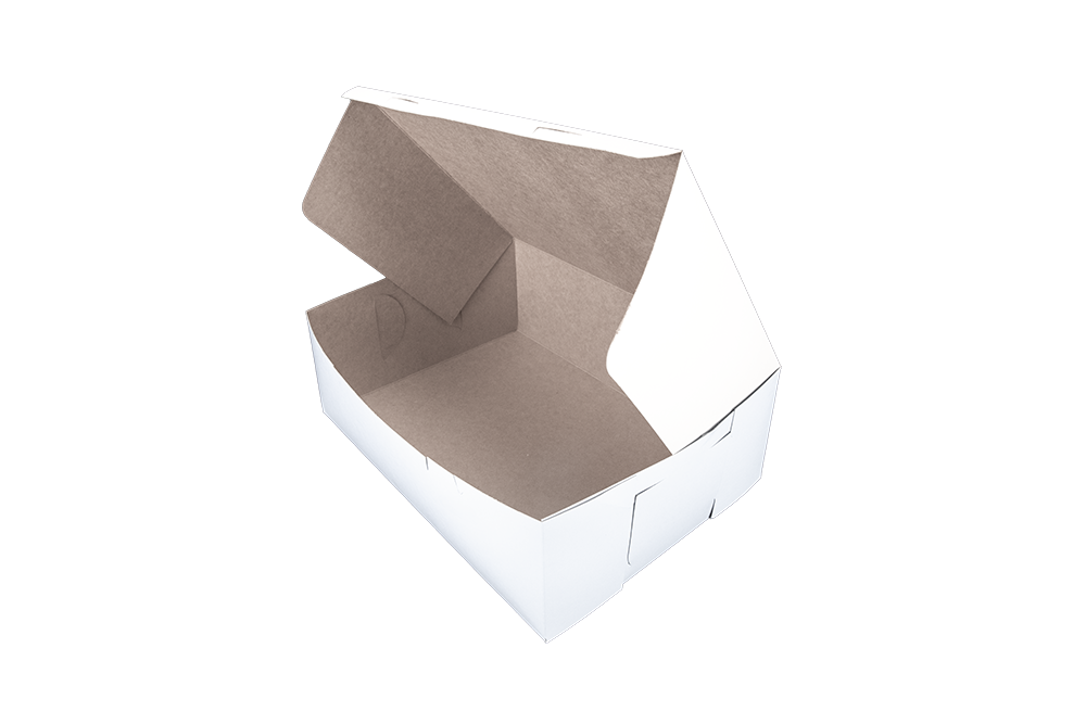 Non-Window Bakery boxes are each one-piece with an attached tuck-in lid and can be used to hold and carry a variety of baked goods, such as cakes, cupcakes, and pastries. The lock corners facilitate assembly and enable the box to be folded flat for storage or transport. The clay-coated exterior can be custom printed with a logo or a business name.