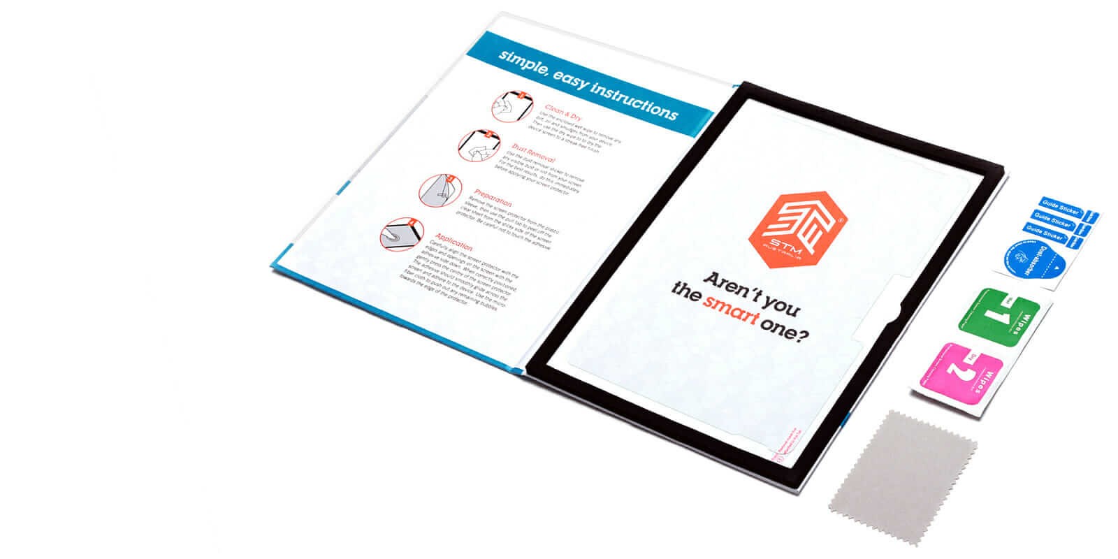 Use the dust removal sticker to remove any visible dust or lint from your screen. For the best results, do this immediately before applying your screen protector.