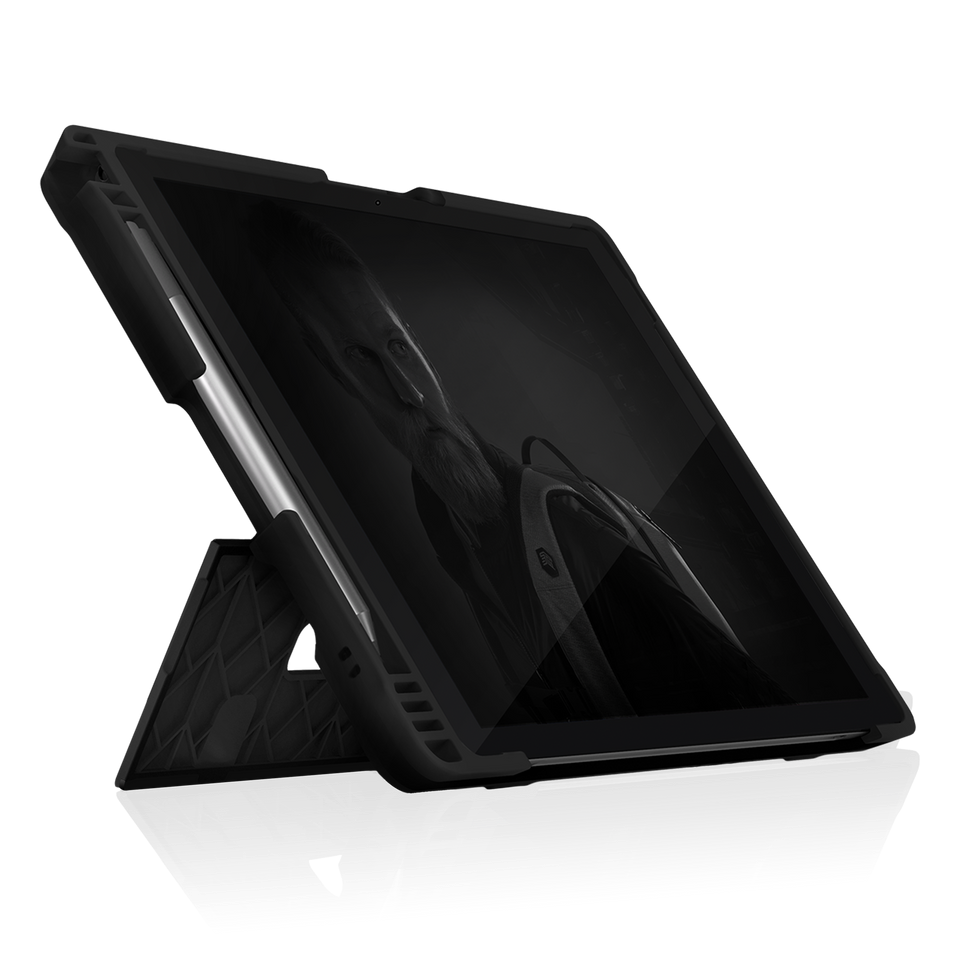 The Dux Shell is a sleek and rugged case designed to fit and protect the Surface Pro 7+, complement the Type Cover and Surface Pen while also fitting previous versions (Microsoft Surface Pro 4,5,6,7). Our unique, transparent back panel allows the pristine beauty of your device to shine through. Slim and lightweight, yet super protective, the Dux Shell has been tested to meet or exceed U.S. Department of Defense 810G drop tests standards.