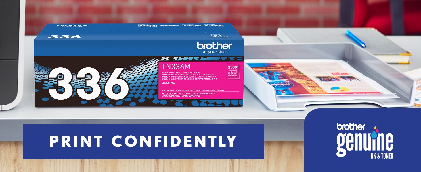 Brother TN336M magenta toner cartridges provide professional laser-quality prints you can consistently rely on for up to 3,500 pages(1).