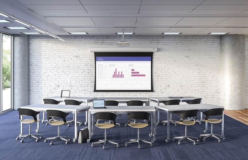 The Tensioned Contour Electrol is a ceiling or wall-mounted electric screen offering simple installation. A variety of finishes make this a seamless addition to any room. 21:9 Ultrawide Format The Tensioned Contour is now available in 21:9 Ultrawide Format part numbers. Ultrawide format is quickly becoming the standard for displaying hybrid video conferencing solutions, where all attendees, whether they are in person or virtual, are equitably seen and heard.