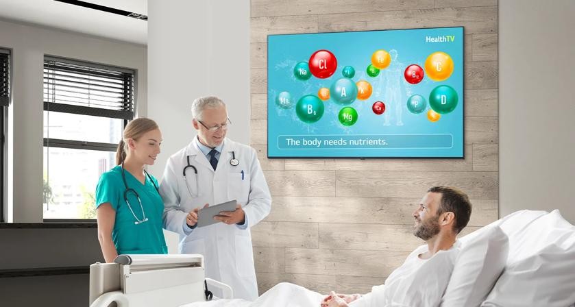 Hospital TV supports embedded broadband local area network (b-LAN), enabling PPV (Pay Per View) and VOD service without the need for a set-top box.