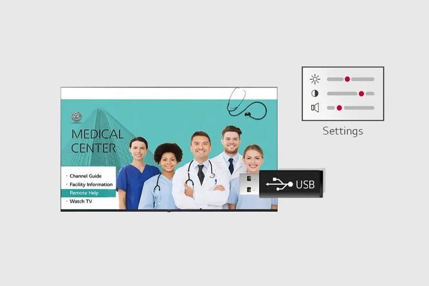 The hospital content management solution Pro:Centric Direct offers easy and simple editing tools, making it easy to perform service and IP network-based remote management. The Pro:Centric Direct solution enables users to edit their interface easily by providing customized interface and efficiently manages all LG hospital TVs in the hospital.