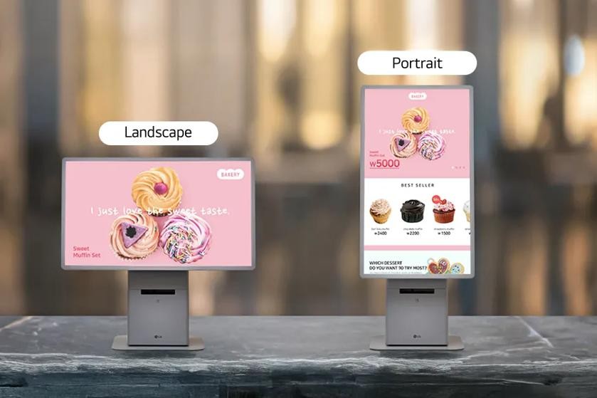 The LG Kiosk modular features customizable peripherals for enhanced user experience and functionality. Its adjustable display supports both landscape and portrait modes, with simplified USB-C connections on all bezel sides. Available in three stand options including Back-to-Back Stand that adapts seamlessly to various retail environments.