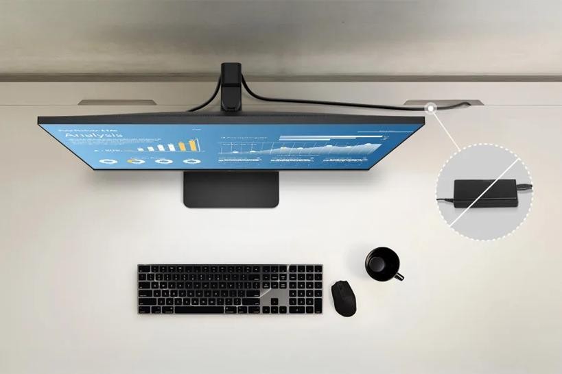 This monitor is designed for the discreet mounting of compatible mini PCs on the rear. A mini PC can be easily mounted behind the monitor stand with an LG bracket*.