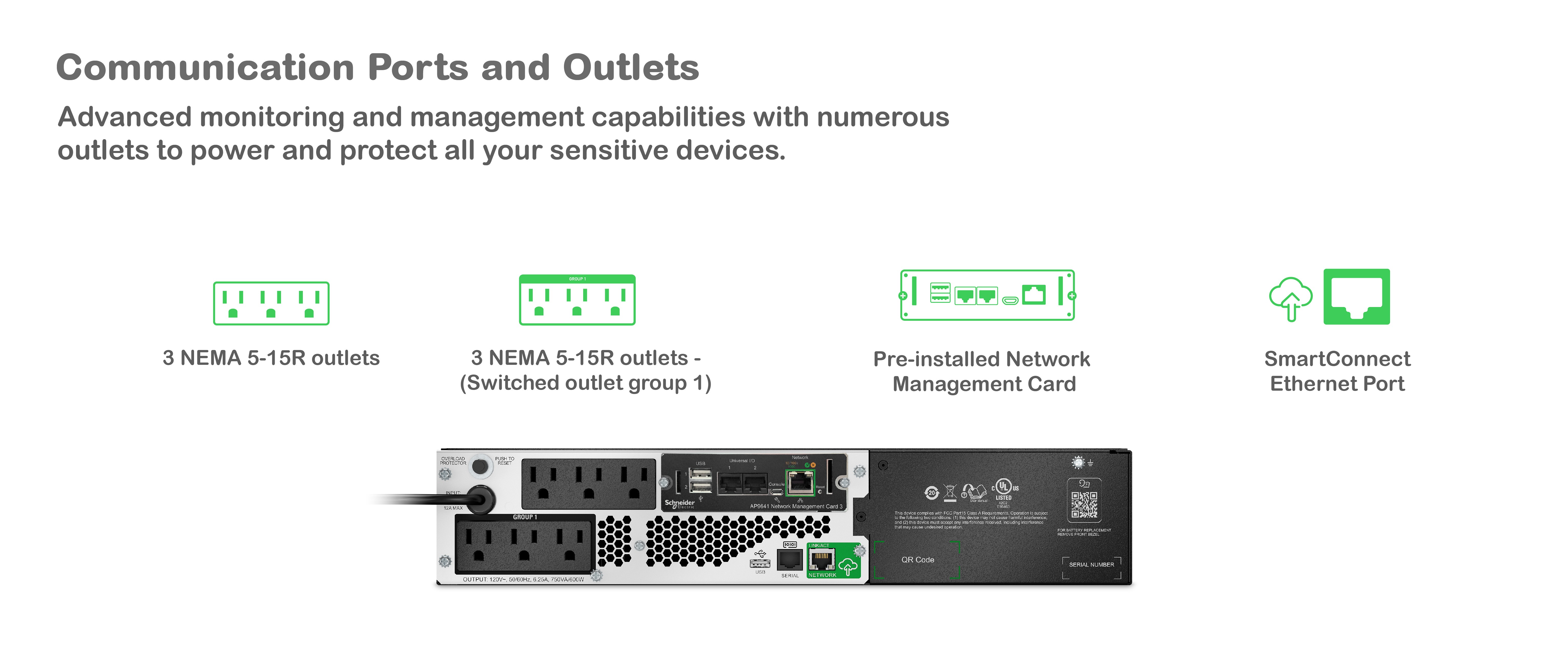 The Smart-UPS Lithium-ion have the AP9641 UPS network management card with environmental monitoring pre-installed.