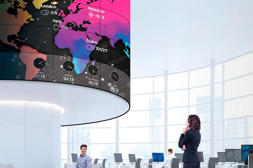 The 55EF5K series enables a completely new approach for innovative and flexible designs. Its optional "Curvature Calibrator(CC)*" supports the coordination of displays with various convex and concave curvature, depending on the requirements. This makes it possible to rapidly respond to changes on-site, making it easier to successfully build an eye catching landmark.