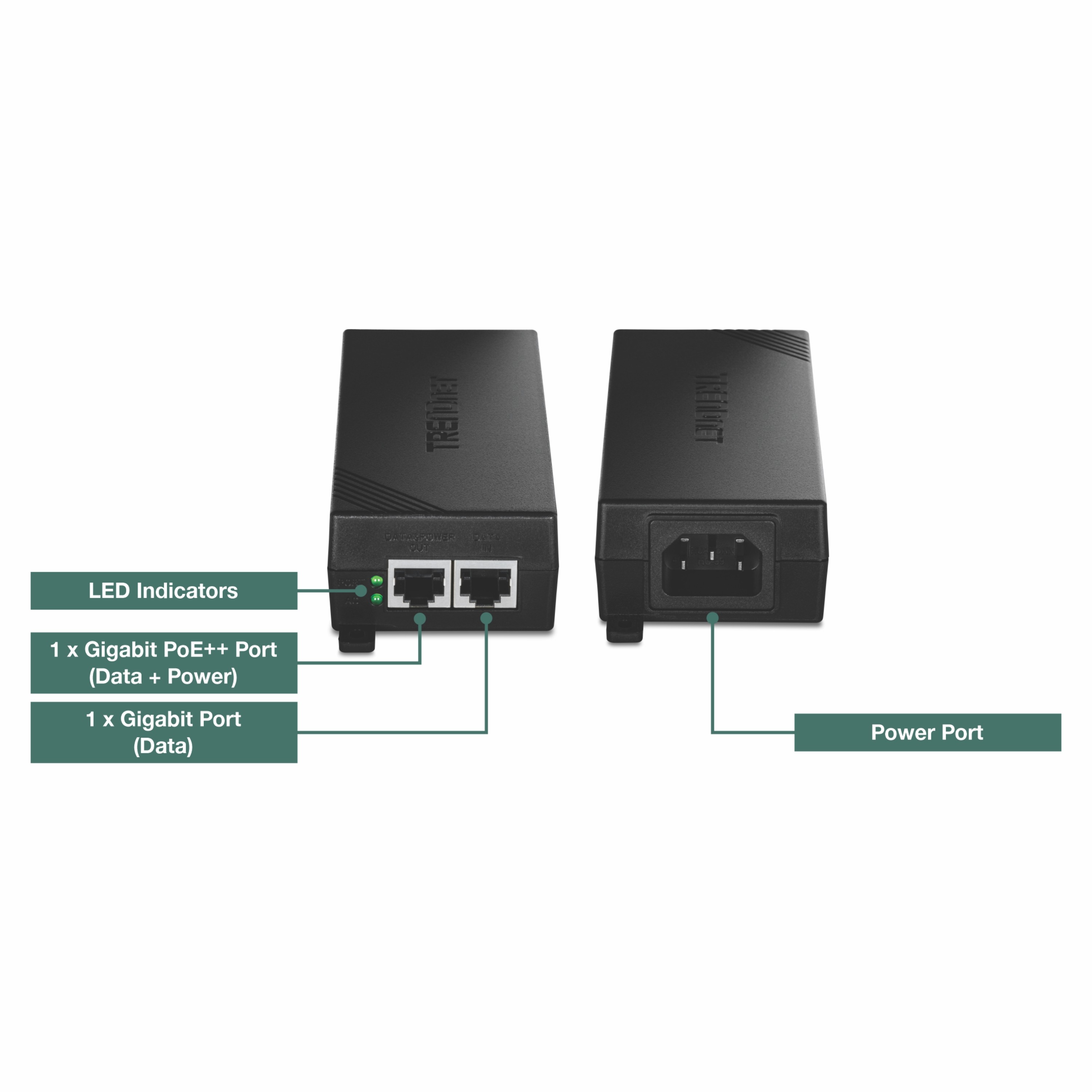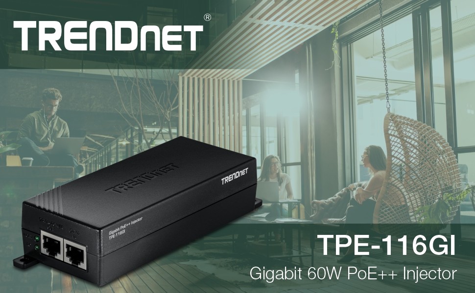 TRENDnet's Gigabit 60W PoE++ Injector, model TPE-116GI, combines electrical power with a gigabit network connection. Autosensing technology conveniently delivers the correct wattage needed to power your PoE devices. Connect the PoE++ injector to a