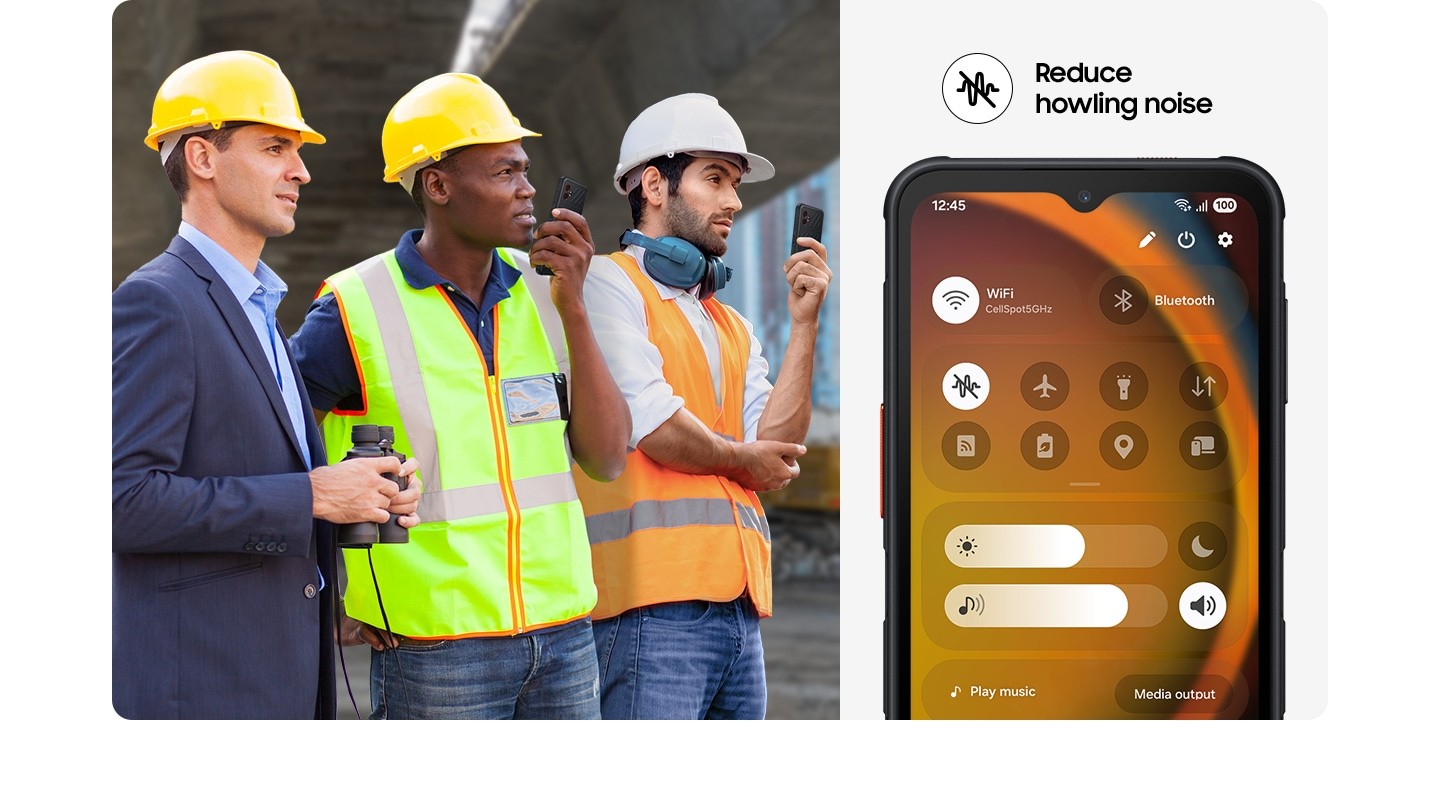 In mission-critical environments like emergency response or industrial sites, multiple nearby devices can cause disruptive audio feedback. Galaxy XCover7 Pro’s anti-feedback technology actively reduces interference, helping deliver stable push-to-talk communication so teams can stay focused without interruption. Paired with tuned stereo speakers, the device delivers reliable, high-quality sound—even in noisy work environments