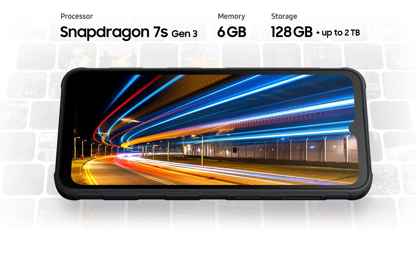 Maximize your work efficiency with Galaxy XCover7 Pro and Snapdragon® 7s Gen 3 processor and 6 GB of memory. Internal storage provides 128 GB for all your work files, photos and videos, and you can add up to 2 TB more with a microSD card