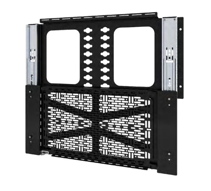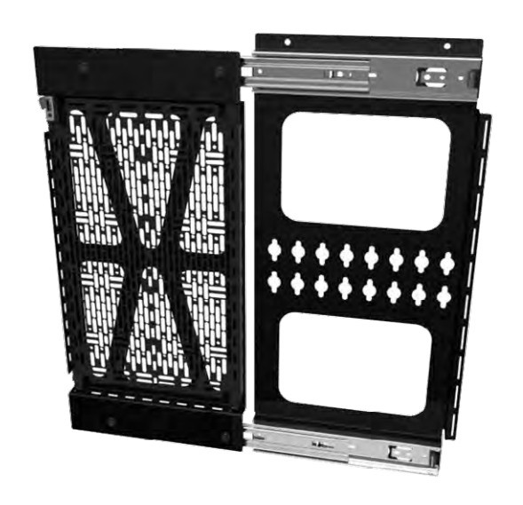The Proximity® Component Storage Slide-Lock Panel facilitates easy, concealed mounting of AV equipment behind displays. To simplify service and accessibility to the equipment simply slide the storage panel out. Install on wall or attach to Fusion® mounts* left, right, or below the display. The built-in and tool-free 15” x 10” Lever Lock™ plate is easily removed and replaced from the slide-lock panel to service the equipment post-installation without touching the display. With a 15 lb. (6.8 kg) weight capacity, this storage panel will hold most small devices for AV installations.