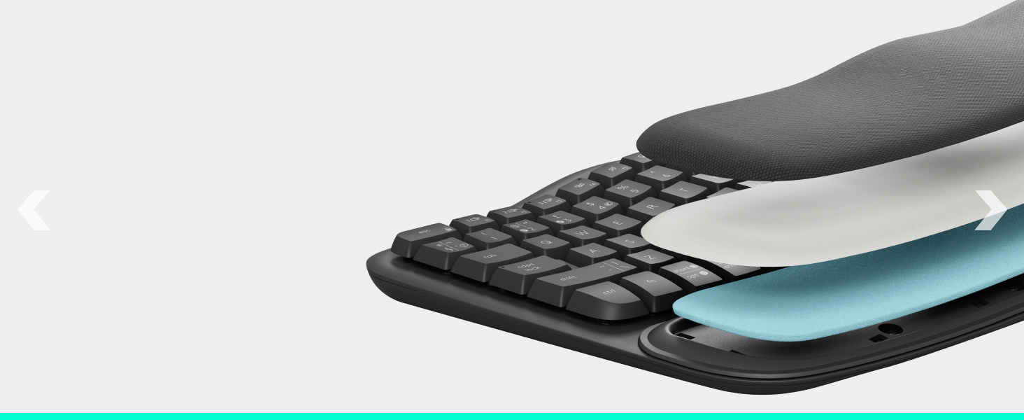 Not just a cushioned palm rest. Three layers of textural comfort work together to give your wrists the support you need.