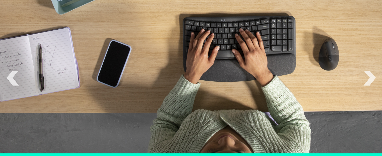 Relax into focus with natural typing. Personalize Wave & Lift via Logi Options+ to save time, stay productive, and customize shortcuts for apps.(2)