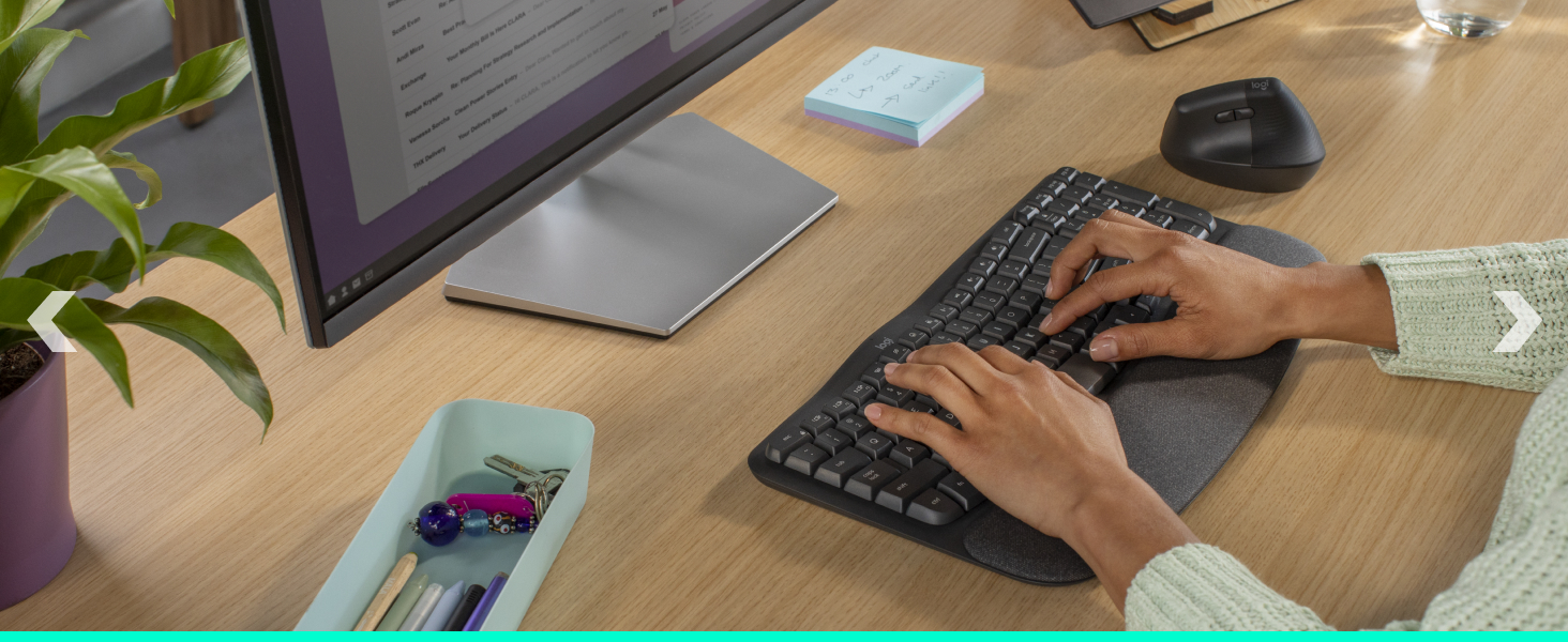 Relax into focus with natural typing. Personalize Wave & Lift via Logi Options+ to save time, stay productive, and customize shortcuts for apps.(2)