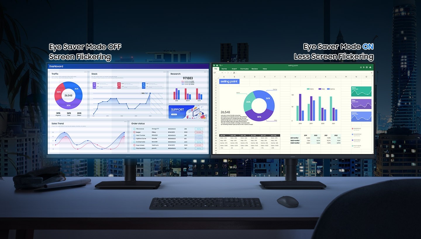 Flicker Free technology continuously helps remove irritating screen flicker, while Eye Saver Mode minimizes blue light emissions