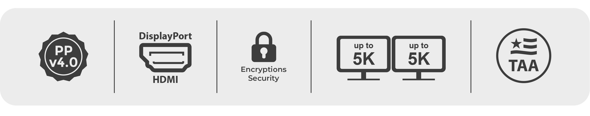 The secure KVM switch supports a dual view display and exceptional 4K Ultra-HD resolutions up to 5120×2880 @60Hz.
