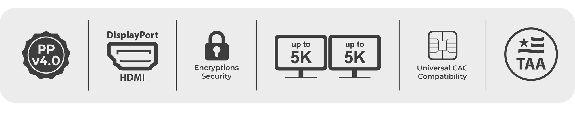 The secure KVM switch supports a dual view display and exceptional 4K Ultra-HD resolutions up to 5120×2880 @60Hz.