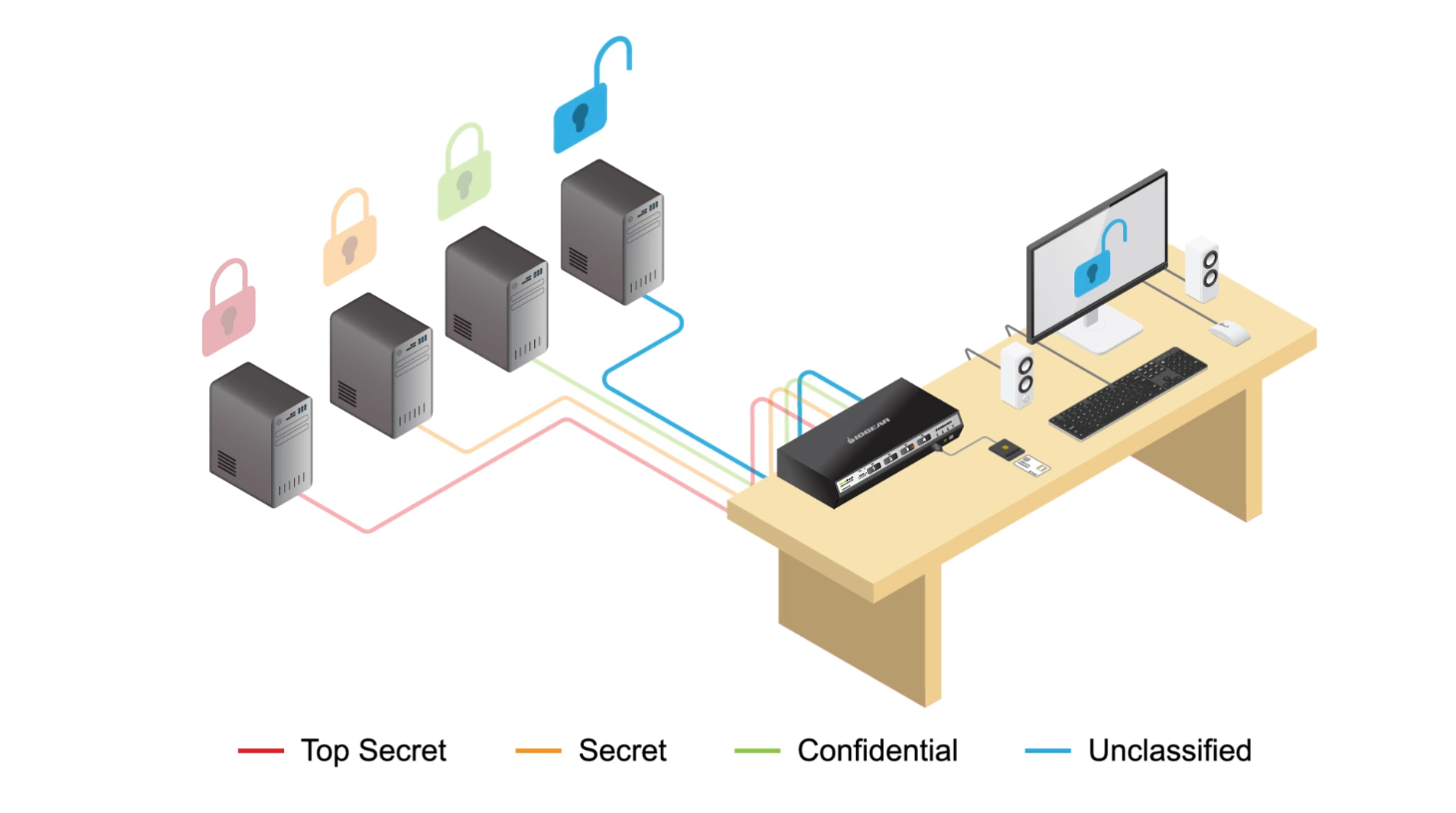 With the combination of physical and software security, secure KVM switches offer secure isolation to prevent internal and external access to individual system with authorization while consolidating multiple workstations with varying security classification levels.