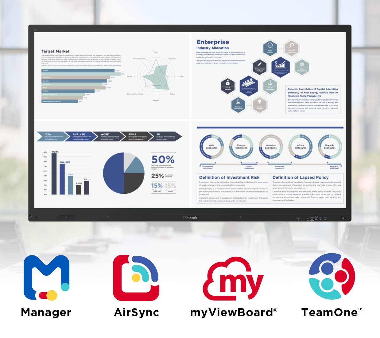 Get more out of every meeting with included ViewSonic ® software like TeamOne and AirSync—delivering a robust ecosystem for whiteboarding, team collaboration, and wireless content sharing at no additional cost.