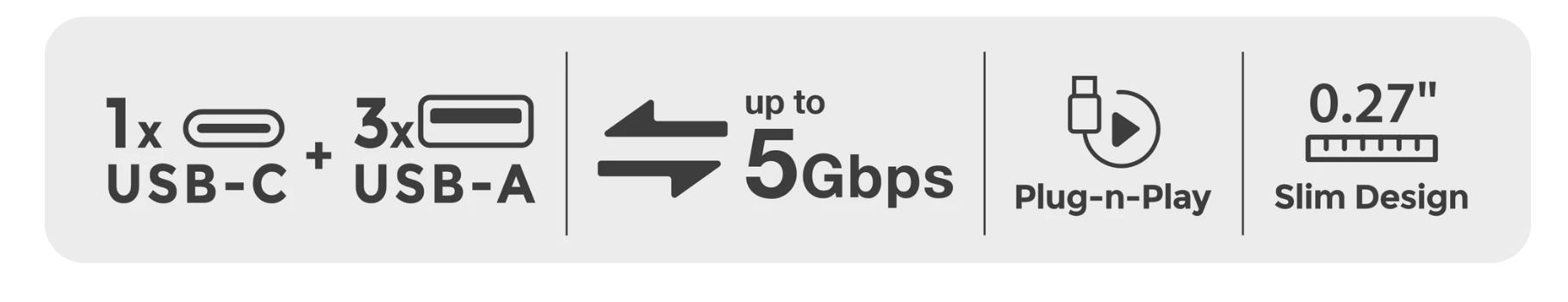 Add Four New Ports in an Instant. Say goodbye to unplugging devices to make room for new ones. The GUH304C hub gives you four extra USB ports—including a super-fast USB-A 3.0, two USB-A 2.0, and one USB-C 2.0—all from a single connection.