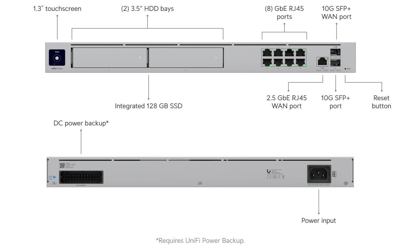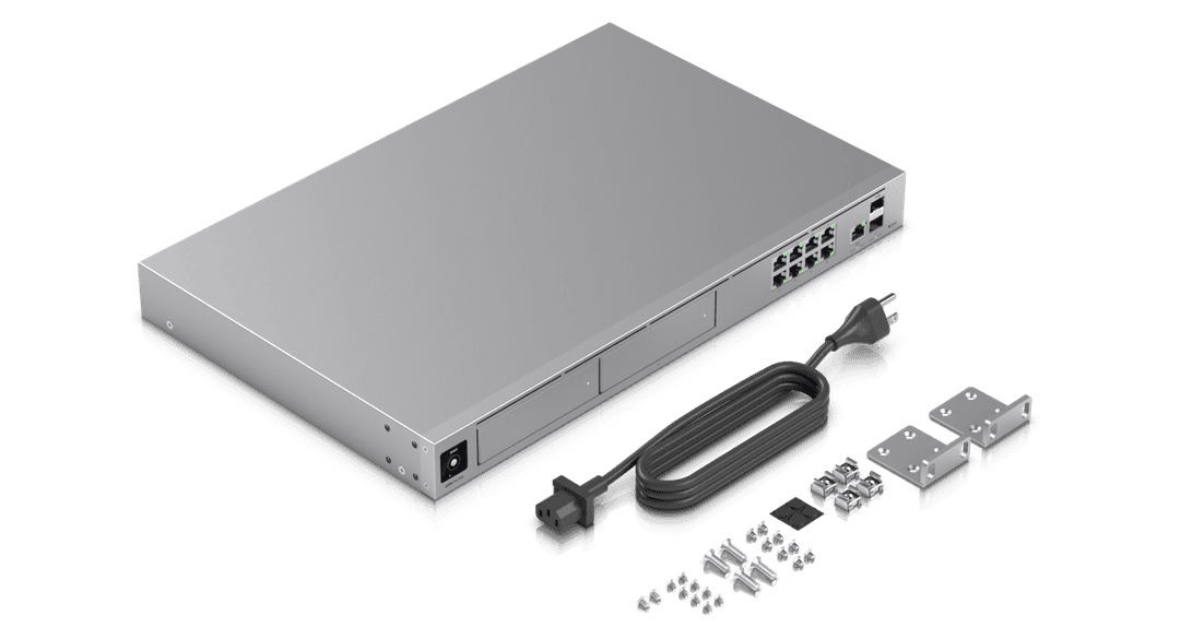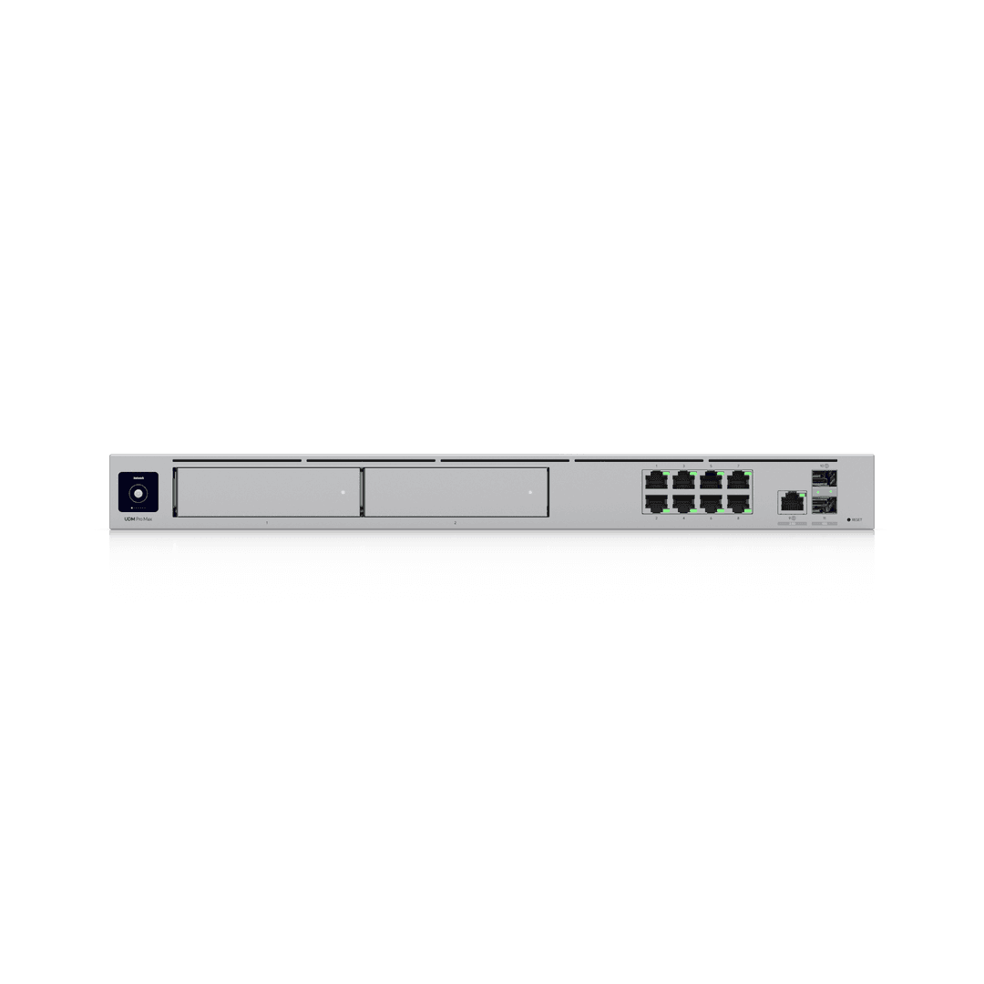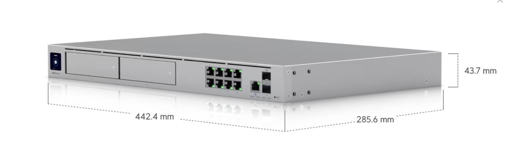 10G Cloud Gateway with 200+ UniFi device / 2,000+ client support, 5 Gbps IPS routing, and redundant NVR storage.