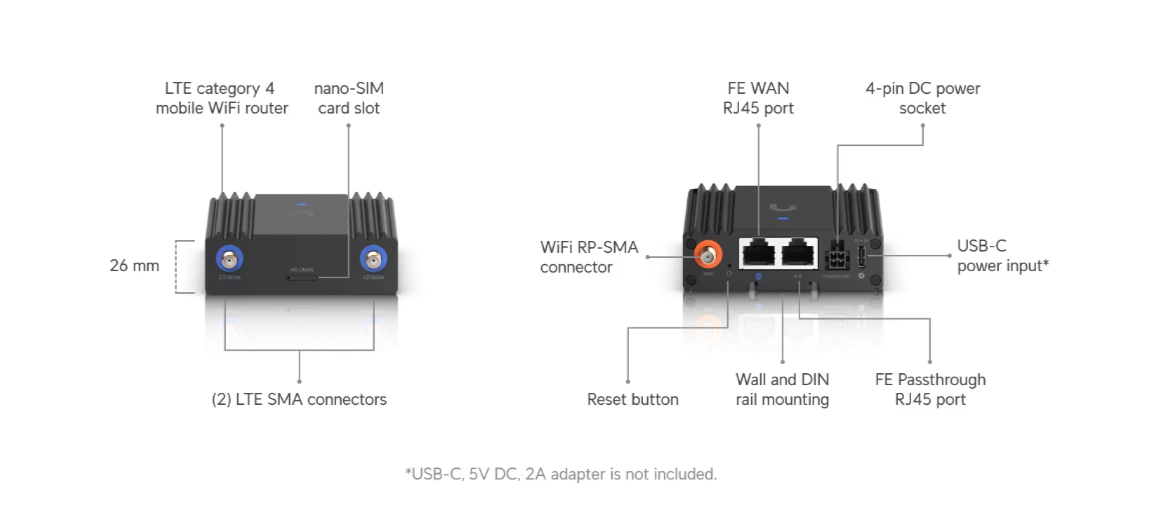 Ultra-compact managed LTE mobile router for IoT applications with integrated LTE, wired WAN, WiFi, automatic failover, and DC power input support.