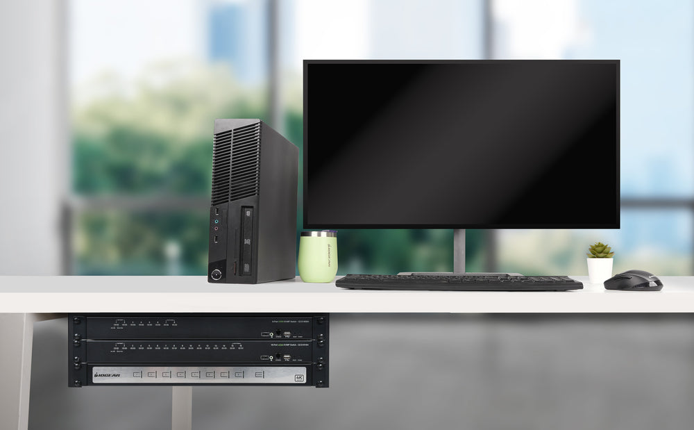 Free up workspace and keep your network or AV equipment within reach by mounting this rack under your workstation.