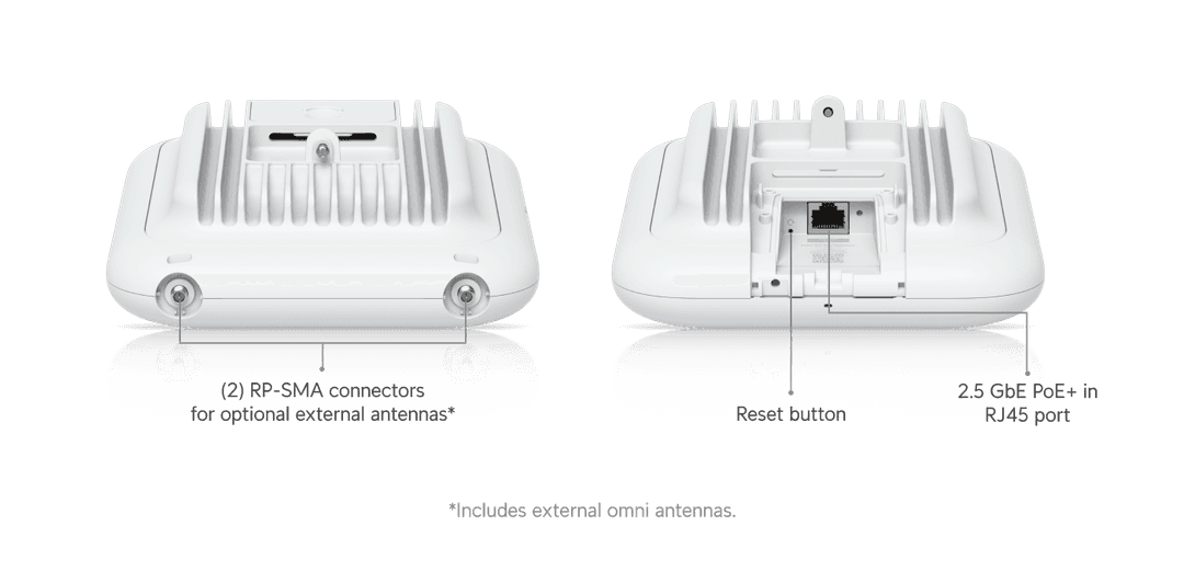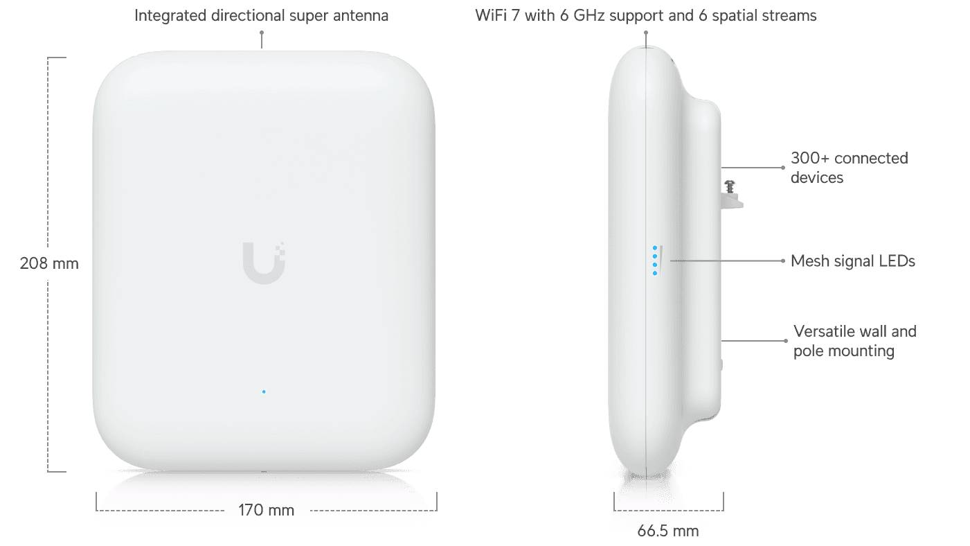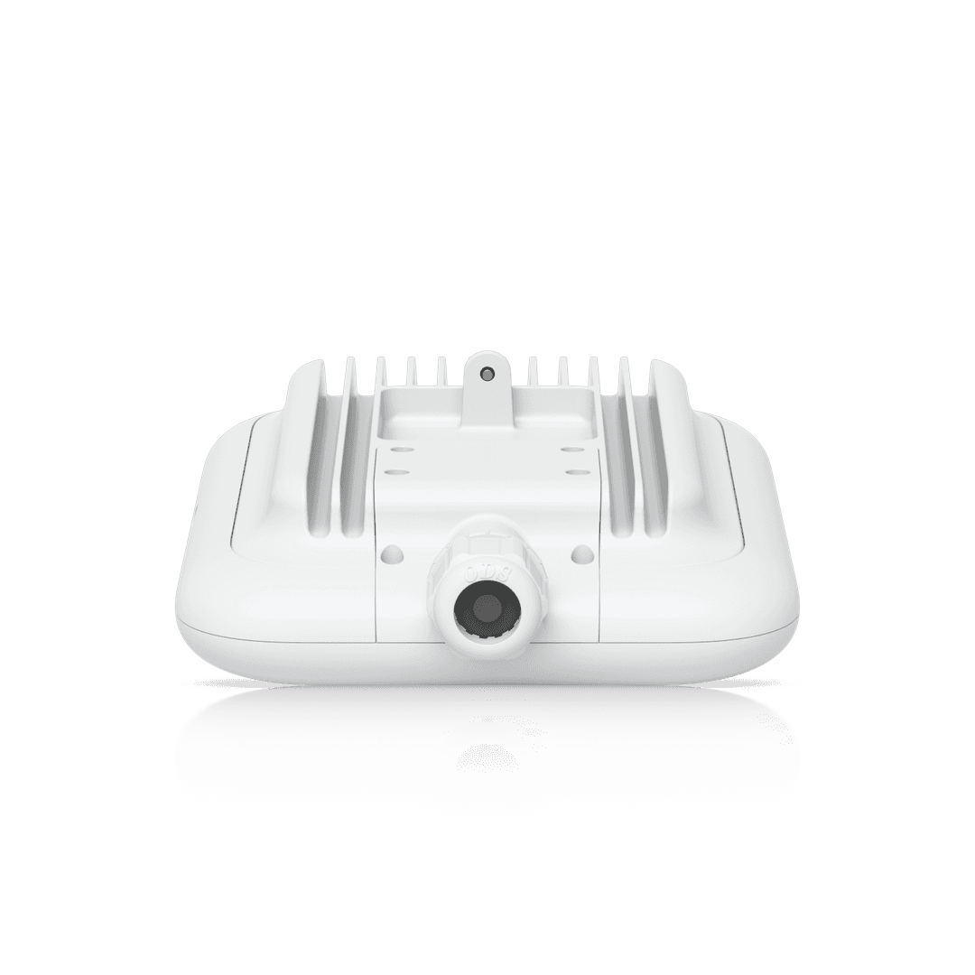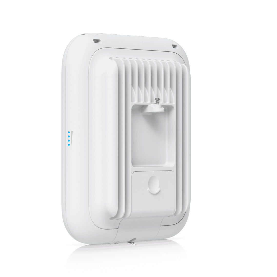 All-weather IP67 WiFi 7 AP with 6 spatial streams, extended-range AFC 6 GHz support, integrated directional super antenna, and articulation mounting bracket.