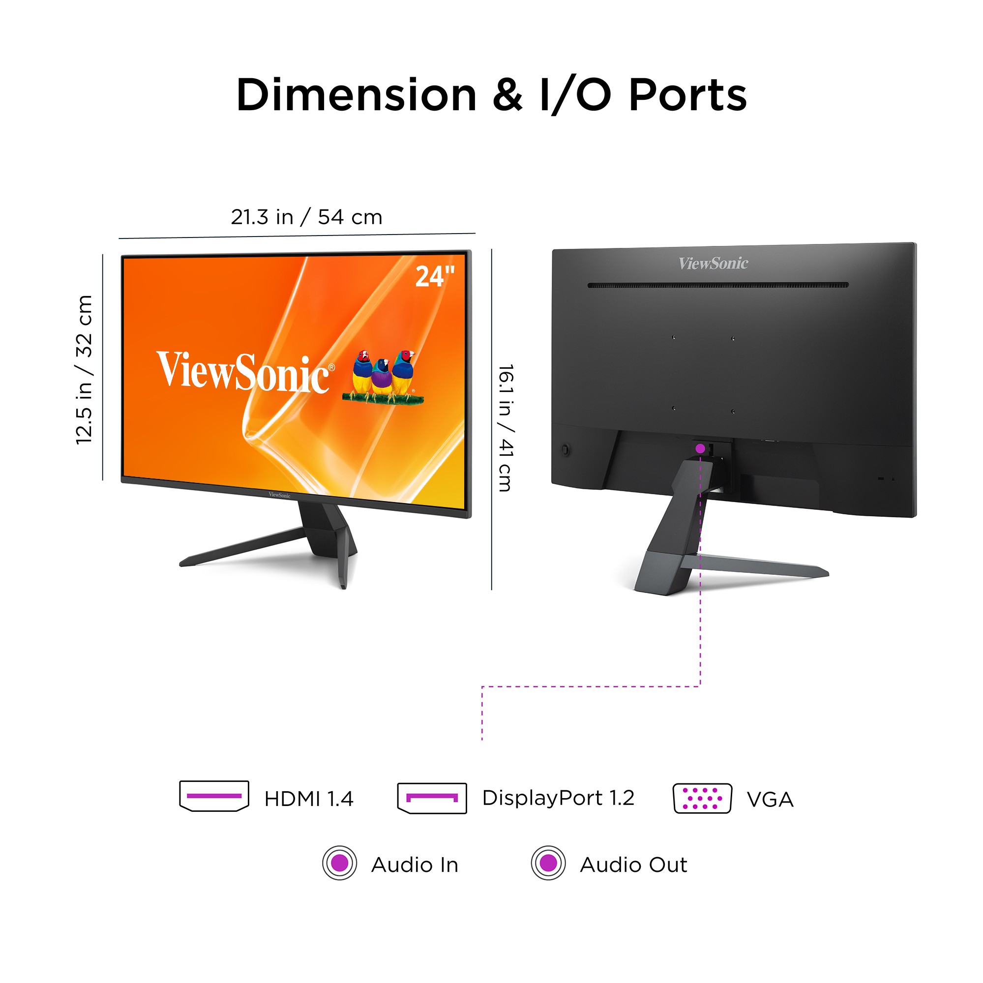 Featuring versatile connectivity and performance, the ViewSonic® VX2470-MHD monitor is built for both work and play. Designed with SuperClear® IPS panel technology for wide-angle viewing and vibrant color, it delivers stunning visuals whether you’re doing projects, watching a movie, or gaming. Its 3-sided frameless design enhances immersion in multi-monitor setups, while connectivity options including VGA, HDMI, and DisplayPort ensure compatibility with your favorite devices. Flicker-Free technology and a blue light filter help reduce eye strain during long sessions, while ViewSonic’s industry-leading 3-year limited warranty offers lasting peace of mind for home, office, and gaming use.
