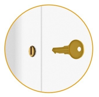 opened. Keyed locking security keeps displays safe, and a universal AV Storage plate holds supporting equipment.