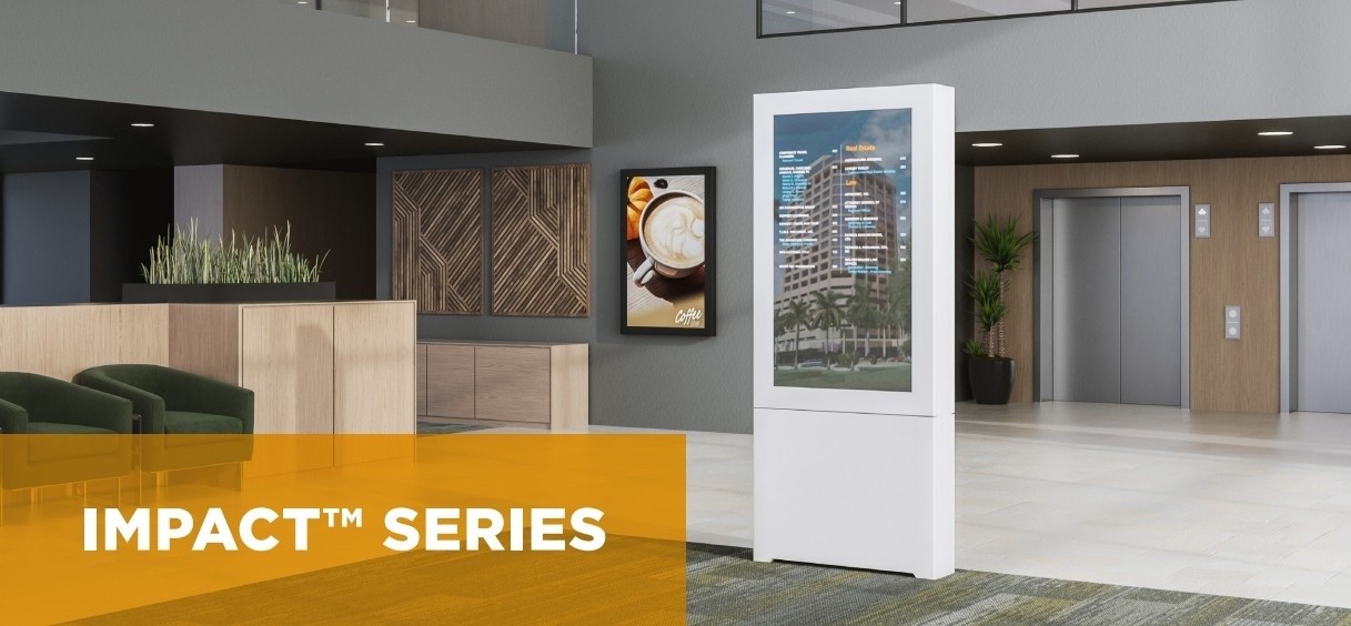 The NEW Chief Impact™ Floor Mounted Portrait Kiosks provide an aesthetic solution for enclosing displays in open areas. Designed with no exposed fasteners while maintaining full access and serviceability. Our exclusive design keeps the display mounted to the frame when