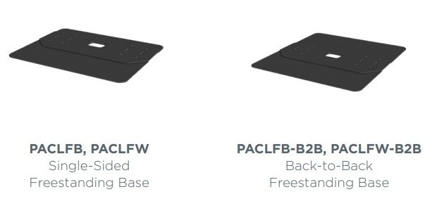 Freestanding base accessories preserve floor finishes, and accommodate movement of kiosks in temporary installations. Bases are offered in single-sided and back-to-back configurations. Tested and approved to UL 2442 ensuring safety for interactive use and servicing - see Accessories page for more details.